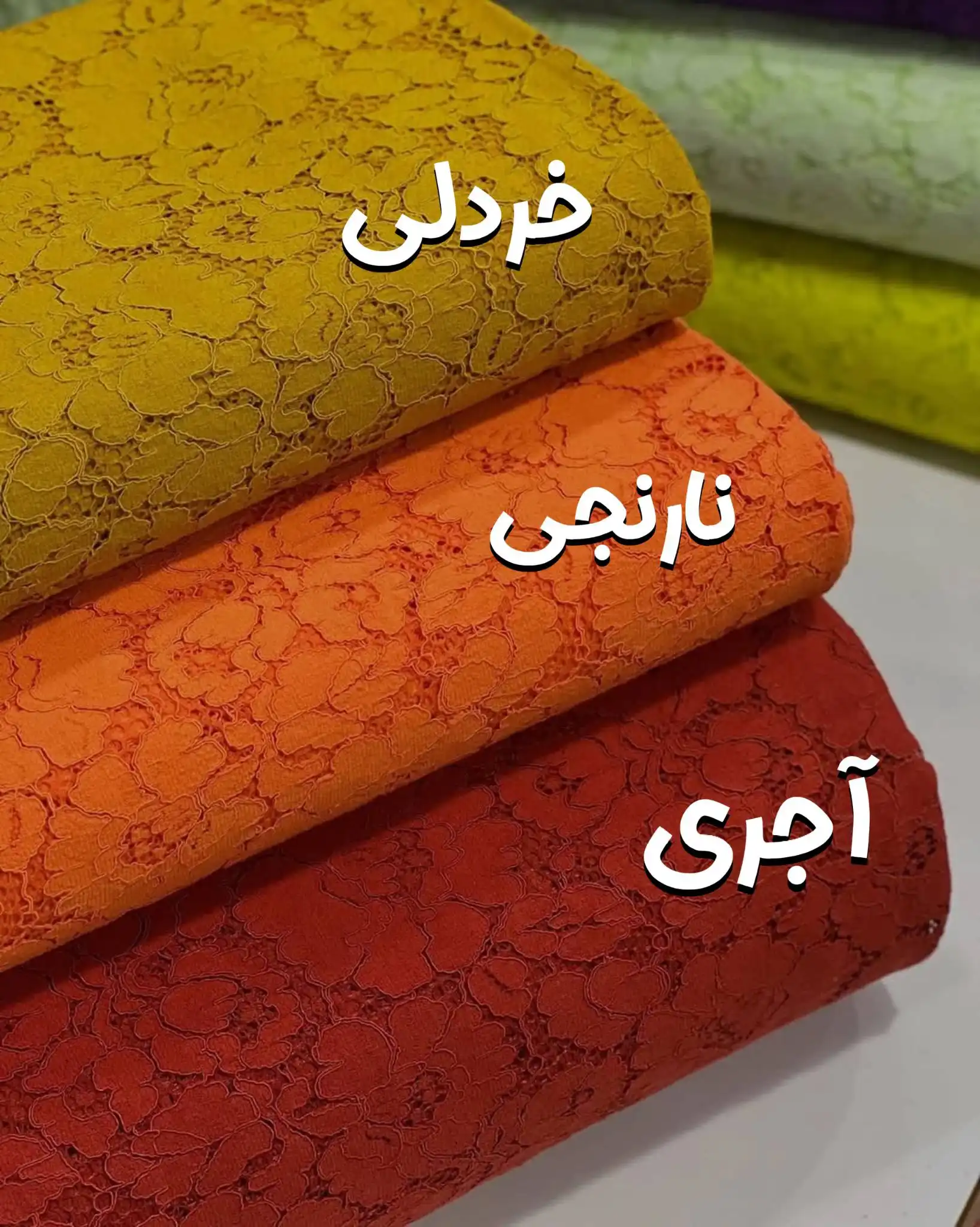 بنفش ,سفید ,طوسی ,کرمی ,مشکی ,آجری ,خاکستری ,خردلی ,زمردی ,زیتونی ,سبز ,سبز پاستیلی ,سبز فسفری ,سبزآبی ,سرخابی ,سرخابی تیره ,سورمه ای ,کالباسی ,مدادی ,نارنجی |
