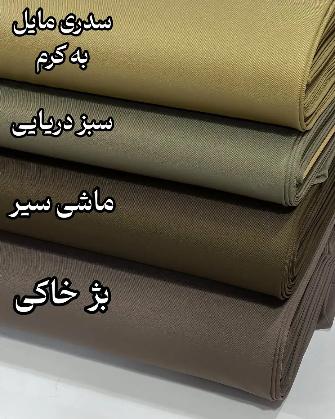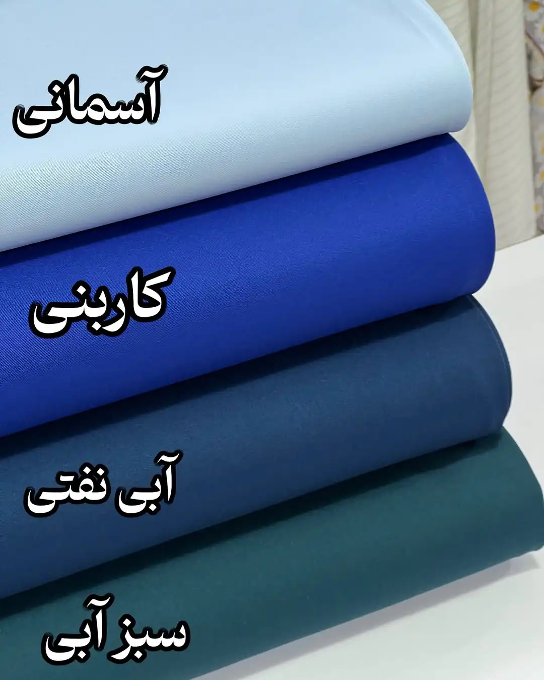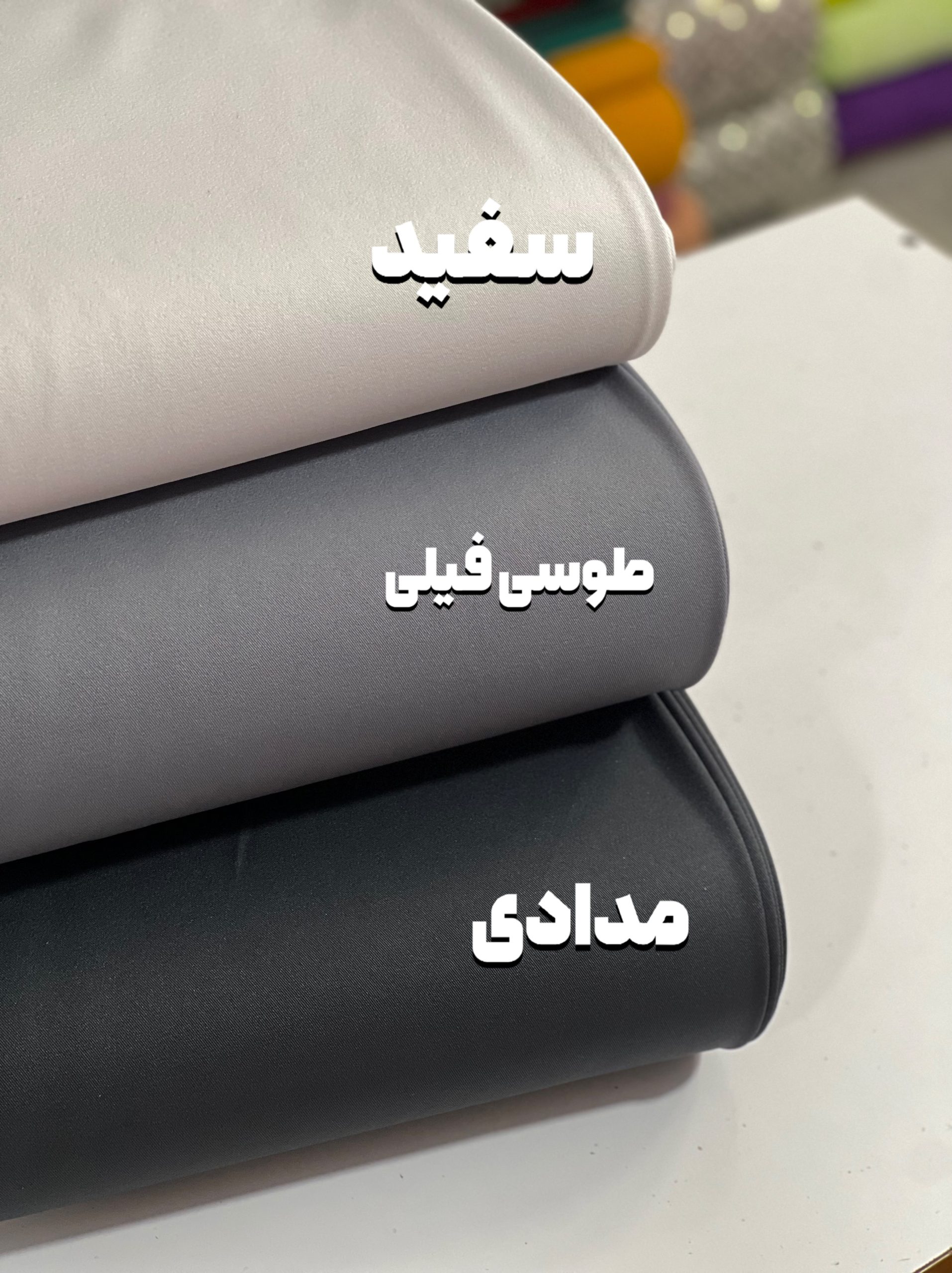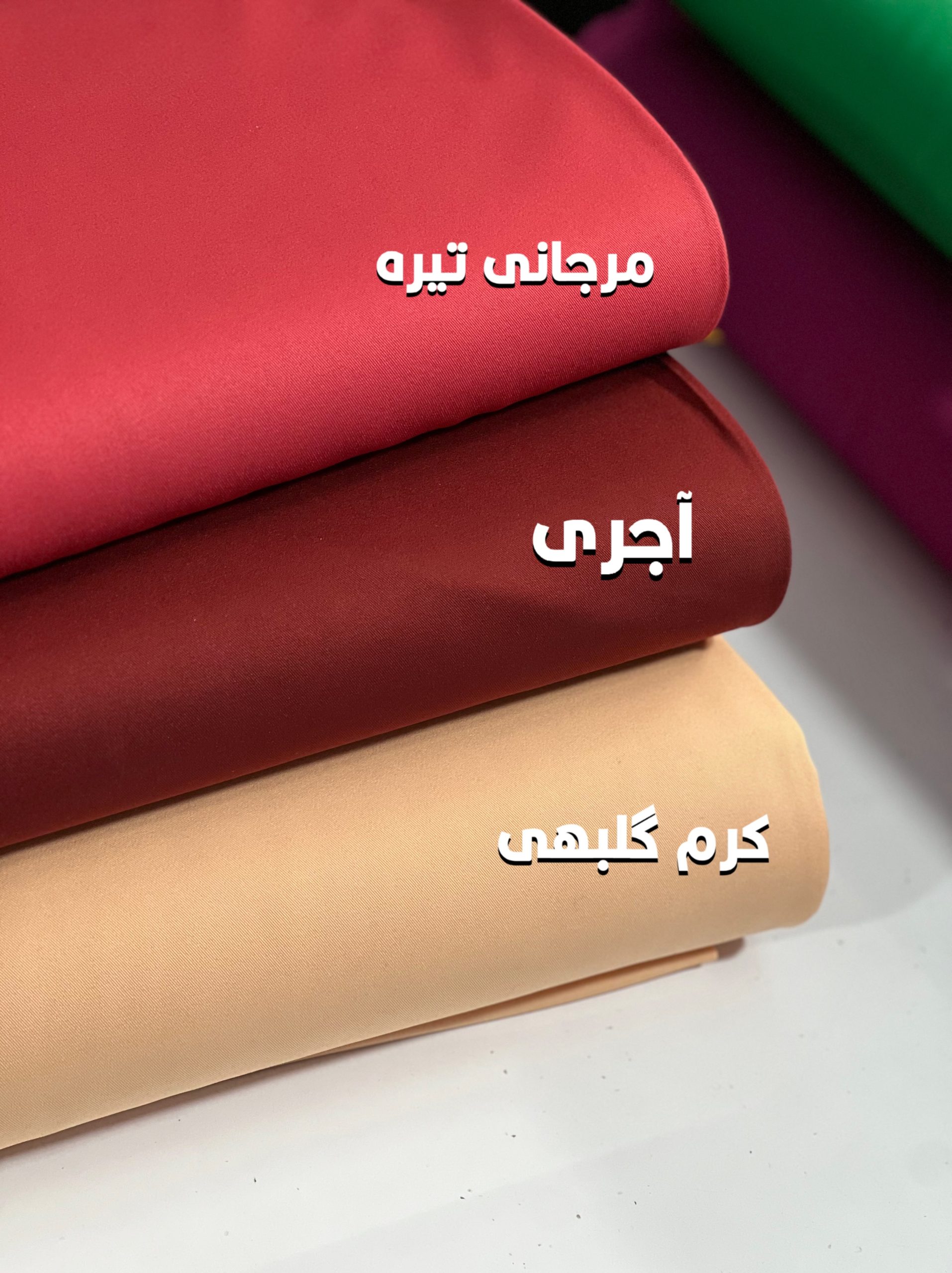 سفید ,گلبهی ,مشکی ,آبی نفتی ,آجری ,آسمانی ,ارکیده ,ارکیده سیر ,بژ خاکی ,جگری تیره ,خردلی ,خزدلی کم رنگ ,زمردی ,زیتونی ,زیتونی سیر ,سبز آبی ,سبز ایرانی ,سبز خردلی ,سبز دریایی ,سدری مایل به کرم ,سرخ آبی تیره ,سرخ آبی روشن ,سورمه ای ,سورمه ای بنفش ,شکلاتی ,صورتی یاسی ,طوسی فیلی ,قهوه ای سوخته ,کاربنی ,کالباسی کدر ,کرم گلبهی ,کله غازی ,ماشی سیر ,مدادی ,مرجانی تیره ,موکا ,نارنجی تیره ,نیلی سیر ,یاسی |